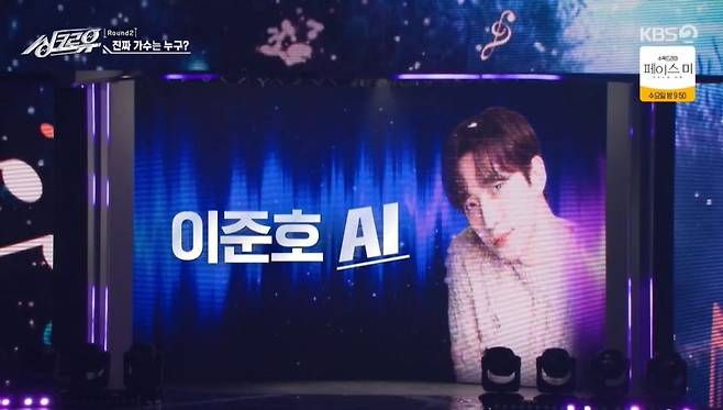 이제 2번 박진영의 차례. 박진영이 나오자 판정단은 진짜인 줄 알고 환호했지만, 마이크를 귀 옆에 대고도 노래가 나왔다. AI였던 것. 박진영은 "저도 뒤에서 듣는데 기술이 계속 발전하는 것 같다. 제 옛날 때 보컬 자료를 많이 모은 것 같다. '허니'를 불렀을 당시 저렇게 불렀다"고 했다. 유재석과 추리단은 충격의 여운으로 말을 잇지 못했다. 이용진은 "솔직히 말하면 비닐 바지보다 충격적"이라고 말해 웃음을 자아냈다.