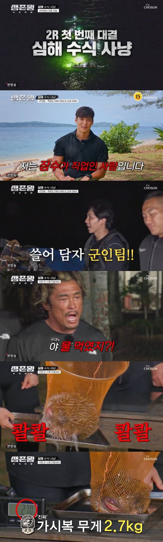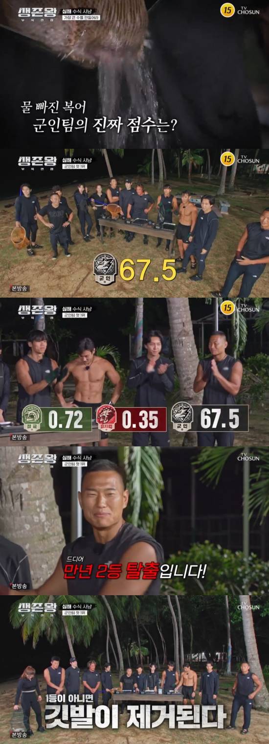 11일 방송된 TV조선 '생존왕'에서는 군인팀(이승기, 강민호, 아모띠)이 처음으로 1위에 오른 장면이 전파를 탔다.