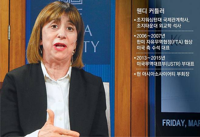버락 오바마 행정부 시절 미국 무역대표부(USTR) 부대표를 지냈고, 조지 W 부시 행정부에선 한미 자유무역협정(FTA) 협상 당시 미국 측 수석 대표였던 웬디 커틀러 아시아소사이어티 부회장은 8일(현지 시간) 동아일보와의 화상 인터뷰에서 “트럼프 대통령 당선인이 취임 100일 안에 무역적자 문제 해결을 위한 관세 인상을 추진할 가능성이 크다”고 말했다.