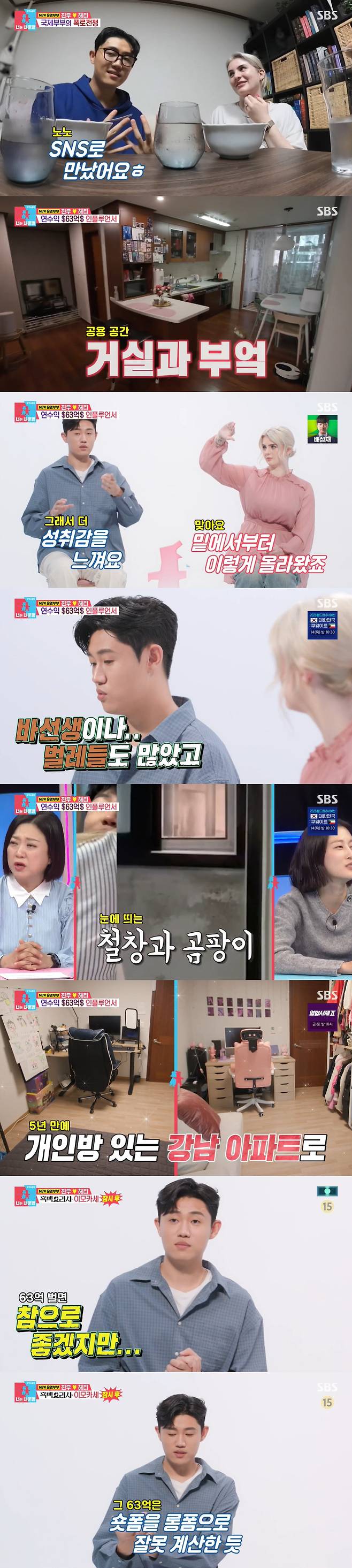특히 이때 부부는 현재 강남 아파트에 거주 중임이 밝혀져 시선을 끌었다. 이에 진우는 "밑에서부터 같이 올라왔다. 성취감을 느낀다"며 "해티의 첫 번째 집은 춘천 반지하였다. 바퀴벌레, 곰팡이가 많았다. 그때 유튜브가 성장하고 있을 때라 '서울로 가자'고 해서 신당 지상 원룸을 거쳐 종로 구축 아파트에 살다가 양국에서 결혼 후 강남 빌라에 이어 강남 아파트에 입성하게 됐다"고 밝혔다.