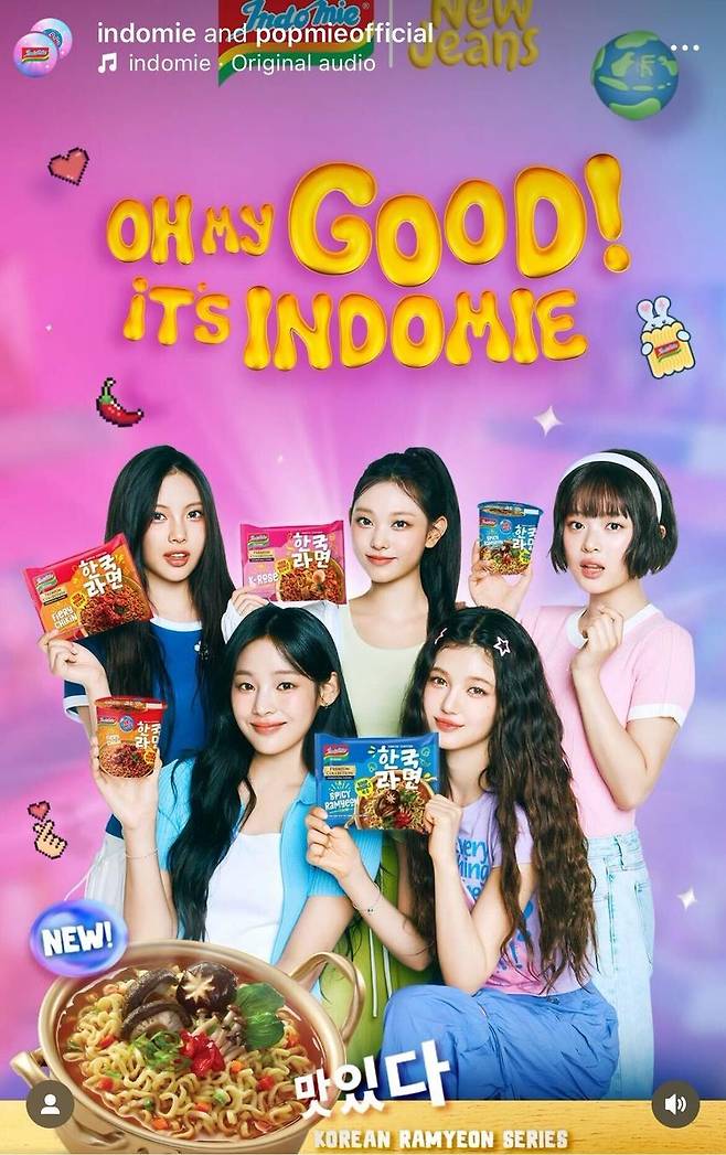 인도네시아 최대 라면 제조사 인도미(Indomie)는 지난달 31일 뉴진스를 브랜드 앰배서더로 선정하고, '한국라면' 시리즈 3종을 출시했습니다. 제품 포장에는 한국어로 '한국라면'이라고 적혀 있습니다.