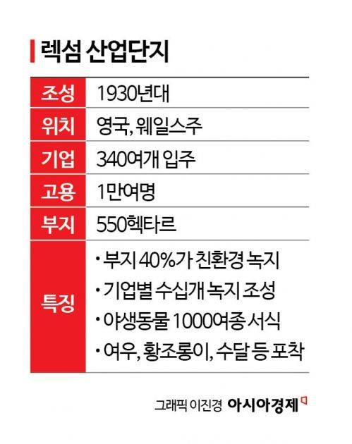 처음부터 렉섬 산단이 친환경적인 모습을 갖추고 있었던 것은 아니다. 렉섬 산단은 세계 2차대전 당시 군수품 공장을 시작으로 조성됐다. 전쟁이 끝나고 부침을 겪기도 했지만 1950년 지역 기업들이 빈 땅에 공장을 지었고, 1960년부터 정부의 보조금 지원까지 제공되자 점차 기업이 늘어났다.