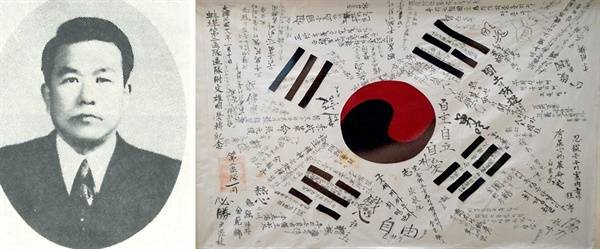 | ▲ 김만식 지사, 한국광복군 서명 태극기 |