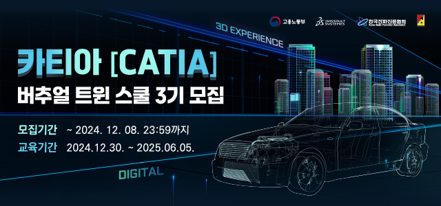이번에 모집하는 카티아 버추얼 트윈 스쿨 3기는 총 33명을 선발해 2024년 12월 30일부터 2025년 6월 5일까지 약 6개월 동안 한국전파진흥협회 가산 DX캠퍼스 1센터 교육장에서 진행한다.