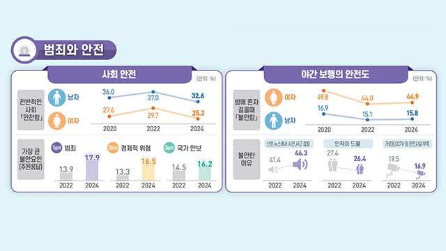 여성 44.9%는 “밤에 혼자 걸을 때 불안”