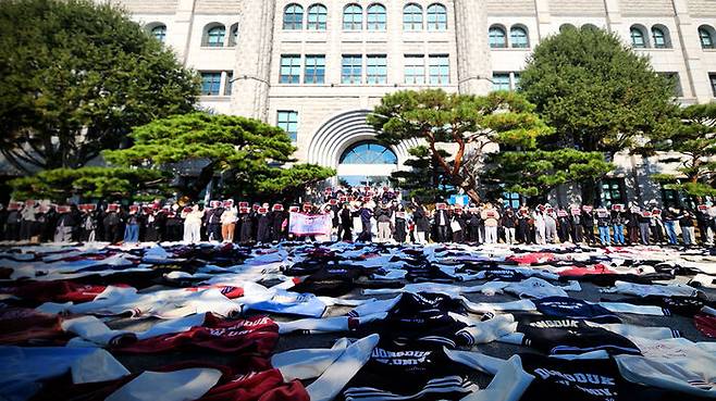 "철회하라" 과잠 시위…동덕여대 '남녀공학 전환' 반발