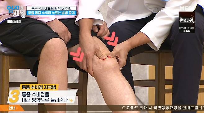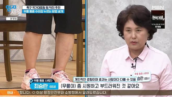 12일 저녁 MBN '엄지의 제왕'에서는 대한민국 축구 국가대표팀 닥터 윤영권 재활의학과 전문의가 출연해 무릎 통증 잡는 법을 소개했다.