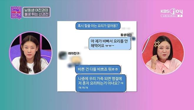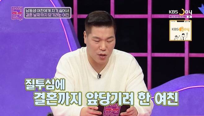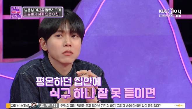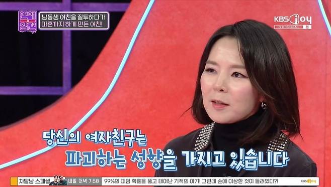 12일 방송된 KBS Joy '연애의 참견'에서는 남동생 여친을 질투하다 파혼까지 하게 만든 여친의 사연이 공개됐다.