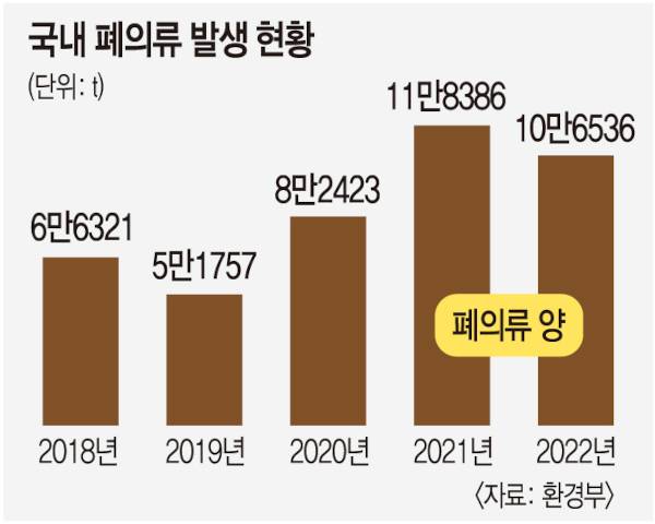 문제는 이렇게 다량으로 구매한 뒤 입을 옷을 제외한 나머지를 모두 버린다는 것이다. 지난 4월 환경부가 공개한 자료에 따르면 전국에서 발생한 폐의류는 2018년 6만6000t에서 2022년 10만6536t을 넘어서며 급증하는 추세다.