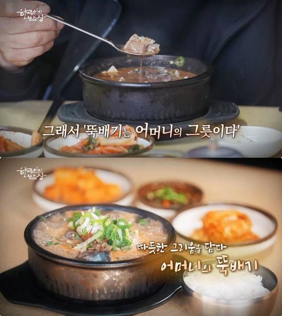한편, 이날 방송에서는 충남 천안의 순대국밥집, 경기 안성의 설렁탕집 그리고 각각 전통과 현대를 대표하는 뚝배기 장인들의 뚝심 있는 이야기를 통해 은근하게 달아올라 쉽사리 식지 않는 온기로 그 시절 우리들의 추위와 허기를 달래던 향수 어린 뚝배기의 맛을 안방극장에 전할 예정이다.