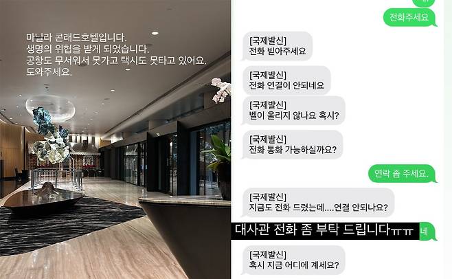 앞서 김나정은 지난 11일 "마닐라 콘래드 호텔에서 생명의 위협을 받게 됐다. 무서워서 공항도 못 가고 택시도 못 타고 있다. 도와달라. 비행기 타면 죽을 것 같다. 마닐라에서도 나가면 죽을 것 같다"며 도움을 요청하는 글을 올렸다. 필리핀 주재 한국대사관에 연락한 사실을 첨부하며 "대사관 전화 좀 부탁드린다"고도 했다.