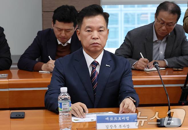 (서울=뉴스1) 김성진 기자 = 김장우 에코프로비엠 부사장이 13일 서울 강남구 역삼동 한국산업기술진흥원에서 열린 美 신정부 대비 배터리 업계 간담회에 자리하고 있다. 2024.11.13/뉴스1