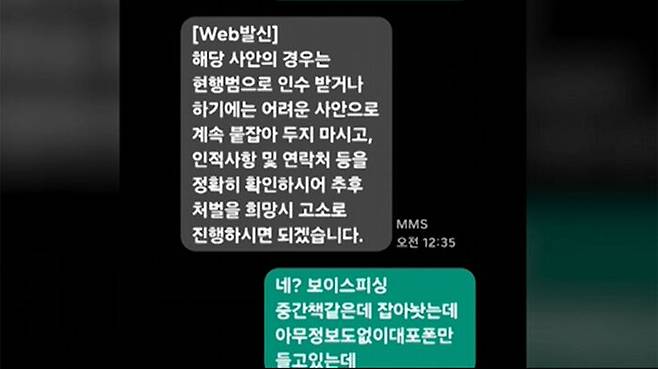 보이스피싱 조직원이란 것을 확인한 A 씨는 상대가 눈치채지 못하게 문자로 112신고를 했습니다.