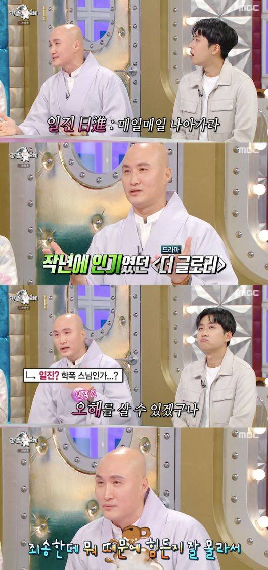 이날 뉴진스님은 법명이 바뀌었다며 “제 법명이 원래 ‘뉴진’이 아니었다. 지난번 출연 때는 ‘일진 스님’으로 출연했다”라고 말문을 열었다.