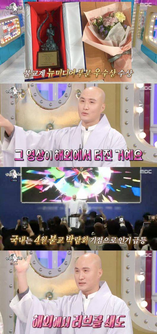 뉴진스님은 지난해 배우 임시완 등이 받은 상이라며 “올해는 정호연, 안은진, 차은우와 함께 받았다. 불교 쪽에서는 뉴미디어 우수상 수상도 했다”라고 자랑했다.