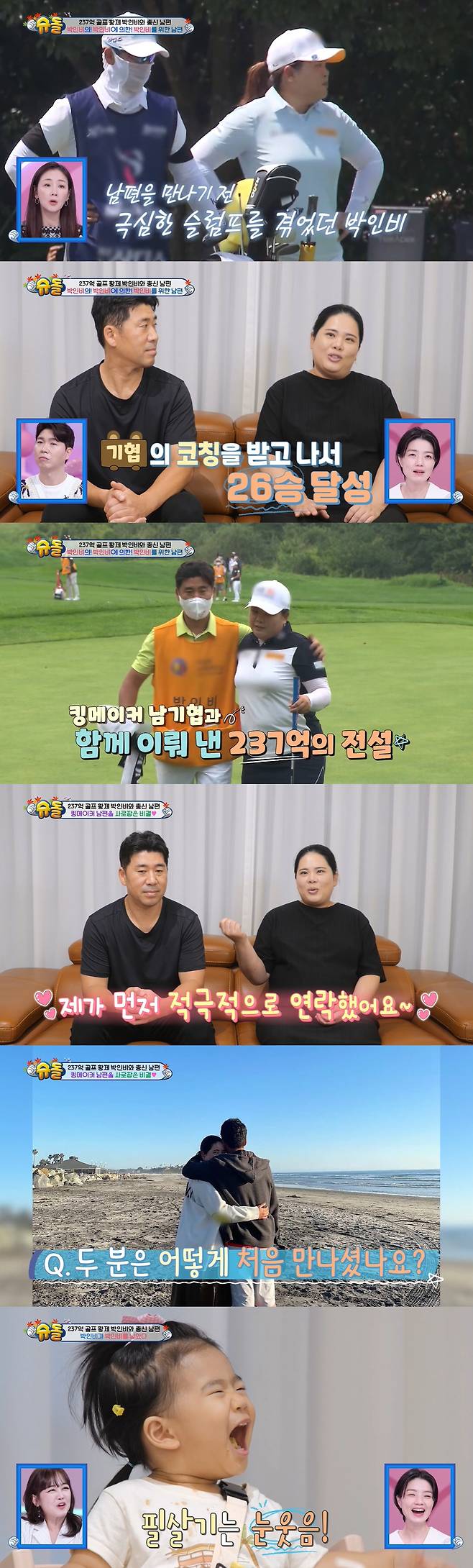 박인비는 자신이 먼저 남편에게 다가갔다며 "제가 적극적으로 연락했다. 좋은 사람일 것 같고 같이 있으면 편할 것 같아 호감이 있었다"라고 말했다. 그렇게 두 사람은 7년간 연애를 했고 결혼 9년만에 딸을 얻었다. 18개월 딸은 흥이 많은 '눈웃음 부자' 귀요미였다. 남다른 골프 DNA를 타고난 신동이라고.