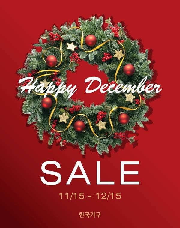 '한국가구'가 연말을 맞이해, 연중 가장 큰 프로모션인 '해피 디셈버(HAPPY DECEMBER)'를 오는 15일부터 진행한다고 밝혔다.