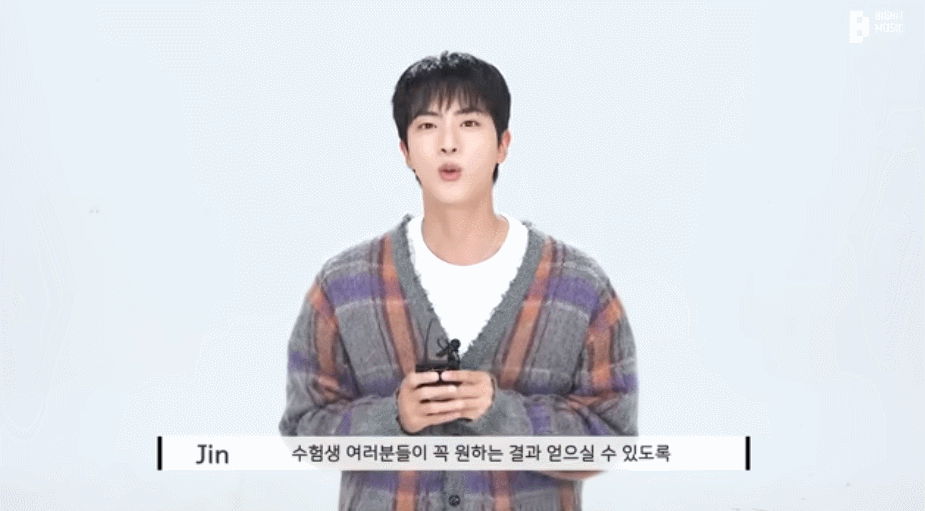 그룹 방탄소년단(BTS)의 진이 2025학년도 대학수학능력시험(수능)을 치르는 수험생들에게 전한 응원의 말이다. 14일 수능을 맞아 연예계에선 가수 아이유, 그룹 뉴진스‧아이브‧아일릿‧세븐틴 등 스타들의 응원 메시지가 이어졌다. 이들은 수험표나 신분증을 챙기라는 세심한 당부도 잊지 않았다.