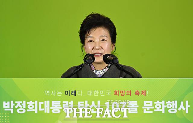 박근혜 전 대통령이 14일 오전 경북 구미시 구미코에서 열린 '박정희 대통령 탄신 107돌 문화행사'에 참석했다.