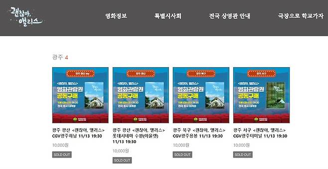 - <괜찮아, 앨리스> 광주 4개 개봉관 매진... "수능 본 아이들 꼭 봤으면"
