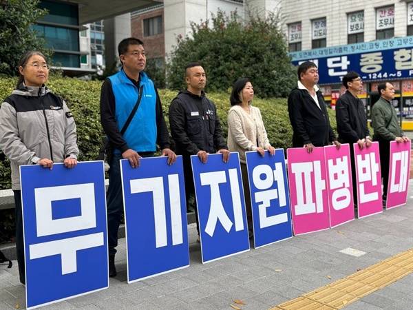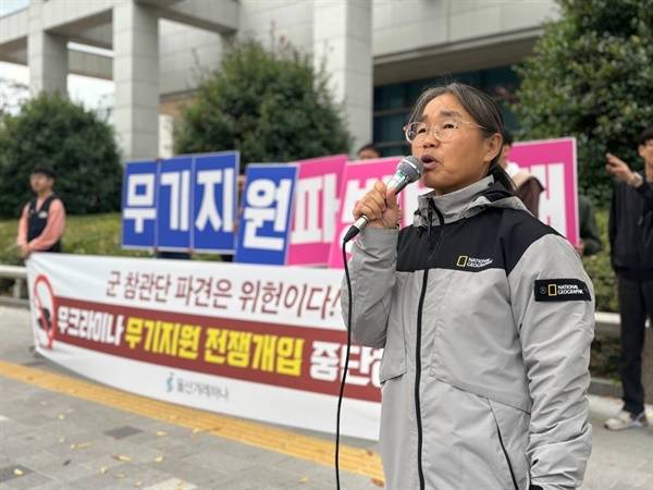 정영희 울산겨례하나 대표는 모두 발언에서 "5명 군인을 우크라이나 참관단 대표단으로 보냈다는데 이는 이미 파병한 것으로 위헌소송감"이라며 "나토에 가는 것과 달리 우크라이나에는 1명이라도 가면 파병이고 국회 승인을 받아야 한다"라고 주장했다.
