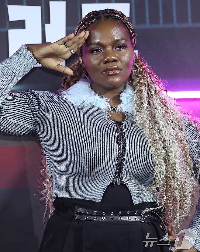 (서울=뉴스1) 권현진 기자 = 방송인 파트리샤가 14일 서울 용산구 CGV 용산아이파크몰에서 열린 넷플릭스 예능 '좀비버스: 뉴 블러드' 제작발표회에서 포즈를 취하고 있다.