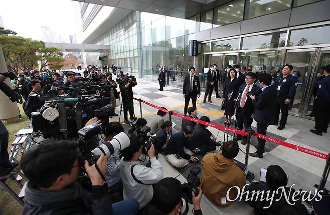 김 변호사 뒤쪽에 서있던 김씨는 별다른 입장을 밝히지 않고 현장을 떠났다.
