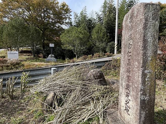 지리산 온천 마을 초입에 선 '백인기 대령 추모비' 주변에는 여전히 '여순 반란 사건'의 흔적이 그대로 남아 있다. 그는 이곳에 주둔하던 토벌대의 연대장으로, 지휘관 회의 참석차 부하 2명과 함께 길을 나섰다가 공비들의 습격을 받고 포위되자 스스로 목숨을 끊었다. 정부는 그의 공적을 기리기 위해 비석을 세우고 현충 시설로 지정, 관리하고 있다.