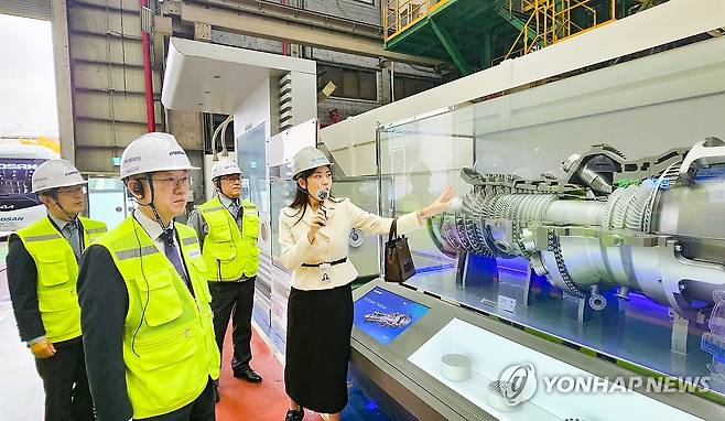 (서울=연합뉴스) 이명구 관세청 차장이 14일 K-원전 대표 기업인 경남 창원시 소재 두산에너빌리티를 방문하여 생산공장을 둘러보고 있다. 2024.11.14 [관세청 제공. 재판매 및 DB 금지]