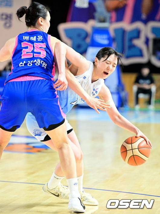 [OSEN=용인, 조은정 기자]14일 용인실내체육관에서 하나은행 2024~2025 여자프로농구 정규리그 용인 삼성생명 블루밍스와 인천 신한은행 에스버드의 2라운드 경기가 열렸다.