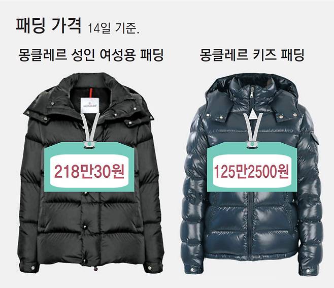 100만 원이 넘어가는 기존 성인용 패딩 대신 가격이 상대적으로 저렴한 키즈 제품이 눈에 띄었기 때문이다.