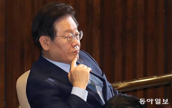 | 심각 더불어민주당 이재명 대표가 14일 오후 국회 본회의장에서 김건희 특검법 표결이 진행되는 도중 굳은 표정으로 앉아 있다. 이 대표는 15일 공직선거법 위반 혐의 1심 선고 공판을 앞두고 심정을 묻는 기자들의 질문에 답하지 않았다. 이훈구 기자 ufo@donga.com |