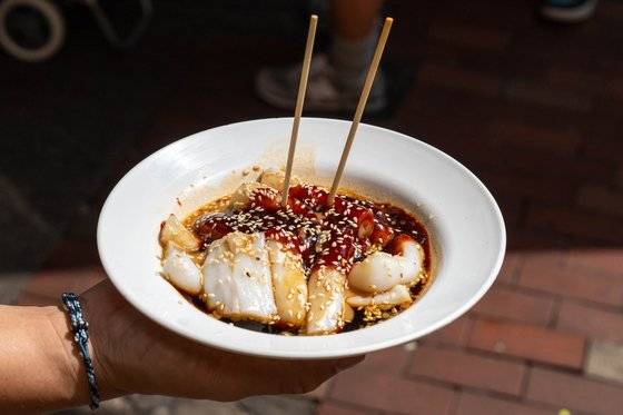주청펀(豬腸粉)이라는 길거리 간식도 있다. 이름처럼 돼지(豬)가 들어가지는 않는다. 흰 떡이 곧게 쭉 뻗은 모양이 돼지 소장을 닮았다 해서 생긴 이름이다. 갓 찐 청펀 가락을 가위로 툭툭 자른 다음 참깨소스와 칠리소스, 간장 등을 듬뿍 뿌려 먹는데, 생김새가 떡볶이와 똑 닮았다. 식감이 워낙 부드러워 씹을 것도 없이 술술 넘어간다. 구룡반도의 구도심 삼수이포(深水埗)에 주청펀 전문집 ‘합익타이(合益泰小食)’가 있다. 하루에 1000개가 넘는 주청펀을 만드는데, 아침에 제일 많이 나간다. 덕분에 이 동네 아침을 이 집이 책임진다는 전설이 내려온다. 주청펀에 뿌리는 참깨소스의 감칠맛이 보통이 아니다. 한 국자 훔쳐오고 싶을 정도였다.