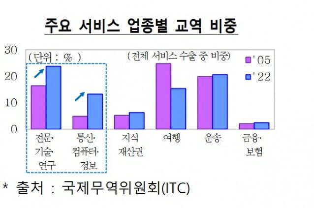 이코노미스트 7월 기사도 인용했다. 이에 따르면 정보통신기술 발달로 클라우드 기반 원격 서비스 등 ‘거래 가능한 서비스’ 중심으로 서비스 수출이 증가하고 있다고 이코노미스트는 분석했다. 연구개발, 통신, 컴퓨터, 정보서비스 등 기술기반 서비스 중심으로 서비스 교역이 빠르게 증가하며 상품 교역 증가세가 두드러지고 있다는 것이다. 서비스 분야 생산성 향상 방안도 발표한 최 부총리는 "향후 5년간(‘25~’29년)역대 최대 규모인 66조원의 수출금융을 지원하겠다"고 밝혔다.