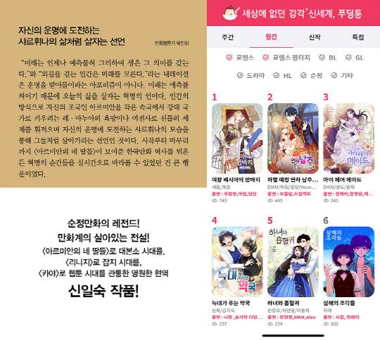 '아르미안의 네 딸들'의 플레잉툰 출시는 한국 순정만화의 전설과 같은 작품을 최첨단 기술로 다시 만나게 된다는 점과 첫 2차 창작물이라는 점에서 세간의 큰 주목을 받고 있다. '플레잉툰'을 통해 복고적 감성의 작품들이 어떻게 새로운 방식으로 재해석될 수 있는지를 보여주며, 웹툰의 진화를 체감할 수 있는 계기가 될 것으로 보인다. 연소연기자 dtyso@dt.co.kr