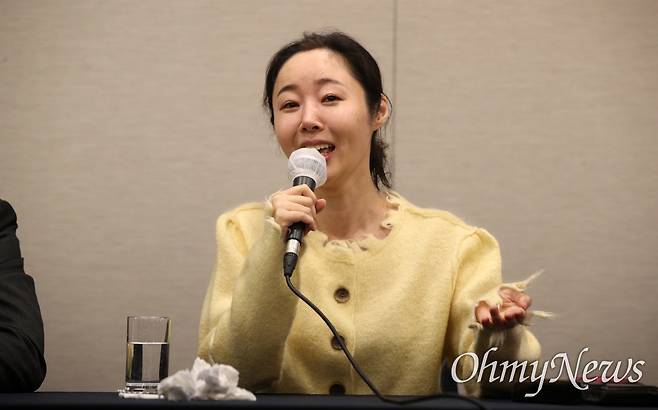 | ▲ 어도어 민희진, 임시주주총회 관련 기자회견 민희진 어도어 대표가 31일 서울 중구 프레스센터에서 어도어 임시주주총회 관련 기자회견을 하고 있다. |