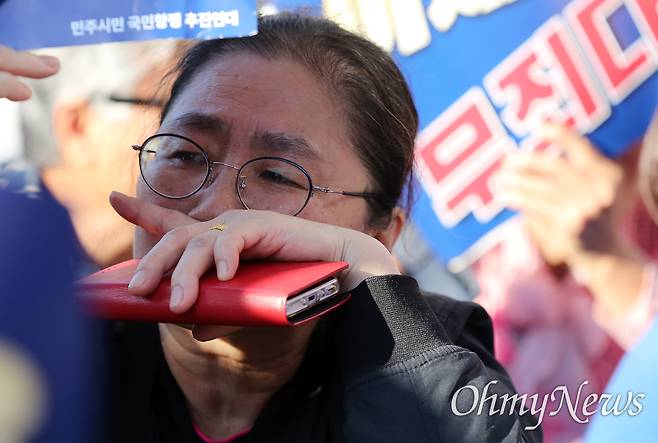 | ▲ 이재명 더불어민주당 대표 징역 1년에 집행유예 2년 이재명 더불어민주당 대표에 대한 공직선거법 위반 혐의 1심 선고공판에서 형사34부(재판장 한성진)는 기소된 혐의 대부분을 유죄로 인정하면서 징역 1년에 집행유예 2년을 선고했다. 민주시민국민항쟁추진연대 주최로 15일 오후 서울 서초구 서울지방검찰청 서문 앞에서 열린 '정치검찰 해체, 이재명 무죄 촉구 시민대회'에 참석한 한 지지자가 소식을 전해들은 뒤 눈물을 흘리고 있다. |