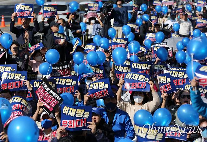 | ▲ "정치검찰 해체, 이재명 무죄 촉구" 이재명 더불어민주당 대표에 대한 공직선거법 위반 1심 선고날인 15일 오후 민주시민국민항쟁추진연대 주최 서울 서초구 서울지방검찰청 서문 앞에서 열린 '정치검찰 해체, 이재명 무죄 촉구 시민대회'에서 참석자들이 이재명 더불어민주당 무죄와 정치검찰 해체를 촉구하고 있다. |