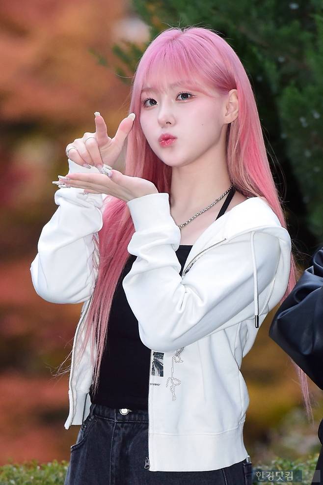 그룹 케플러 김채현이 15일 오전 서울 여의도 KBS 별관에서 열린 '뮤직뱅크' 리허설에 참석해 포즈를 취하고 있다.