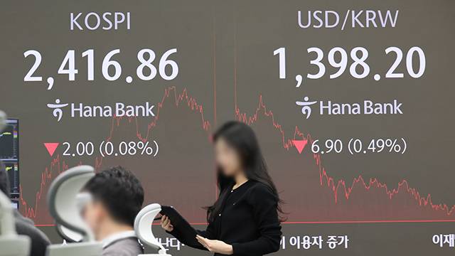 장 초반 2,400선 아래로 떨어졌던 코스피가 하락 폭을 다소 만회하며 2,410대에서 장을 마쳤습니다.