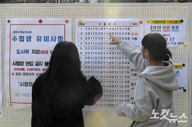 2025학년도 대학수학능력시험을 하루 앞둔 13일 서울 성동구 성수고등학교에서 수험생들이 예비소집을 맞아 고사장 및 유의사항 등을 점검하고 있다. 박종민 기자