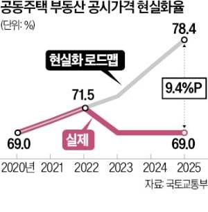 공시가격 현실화는 문재인 정부에서 도입한 제도다. 공동주택 기준 현실화율을 2030년까지 90%로 끌어올린다는 게 핵심이다. 당초 계획대로라면 내년에 공동주택 78.4%, 단독주택 66.8%, 토지 80.8%의 현실화율이 적용돼야 한다. 하지만 윤석열 정부는 작년부터 2년 연속 2020년 수준의 현실화율(공동주택 69%, 단독주택 53.6%, 토지 65.5%)을 적용했다.