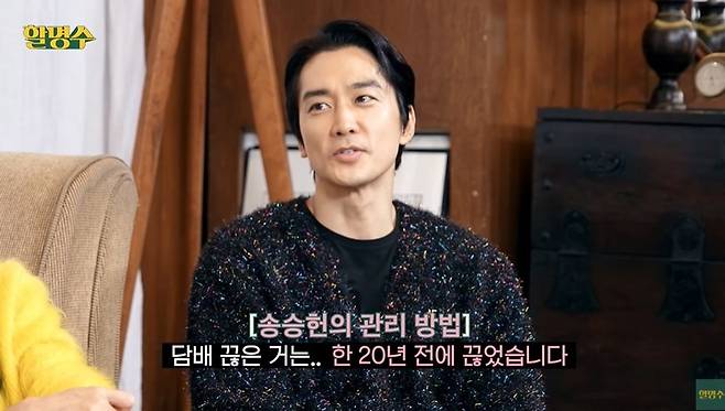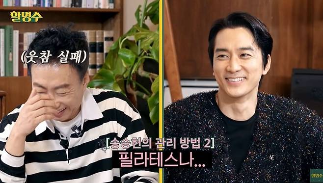 박명수는 "어떻게 머리도 하나도 안 빠졌냐"라며 관리 비법을 물었다. 48세 송승헌은 "관리한다면 담배는 20년 전에 끊었다. 필라테스도 한다. 최근에 알게 돼서 1년 꾸준히 하고 있다. 이래서 좋다고 하는구나 깨달았다"라며 '방부제 외모'에 대한 노력에 대해 밝혔다.