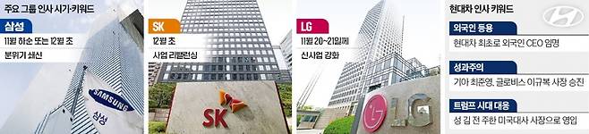 삼성은 이르면 11월 말, SK는 12월 초 사장단 인사를 한다. 삼성은 반도체(DS)부문 사장단 진용의 큰 변화가 유력한 가운데 세트(DX)부문에서도 일부 변화가 예상된다. SK는 올초부터 고강도 리밸런싱을 통해 수시 인사를 진행한 만큼 연말에는 ‘안정 속 혁신’을 꾀할 것이란 관측이 우세하다.