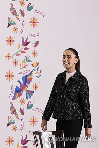 epa11722781 Mexican President Claudia Sheinbaum arrives for a press conference at the National Palace in Mexico City, Mexico, 15 November 2024. Sheinbaum denied that the sending of a Mexican delegation to Lima for the Asia Pacific Economic Cooperation Forum (APEC) is related to a de-escalation of diplomatic tension between Peru and Mexico. EPA/JOSE MENDEZ