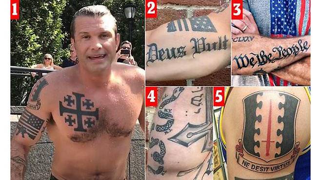 미 국방장관 지명자 몸 곳곳에 '극우·기독교 극단주의' 문신