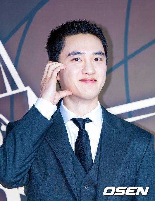 가수 겸 배우 도경수 (디오)가 입장하며 포즈를 취하고 있다.