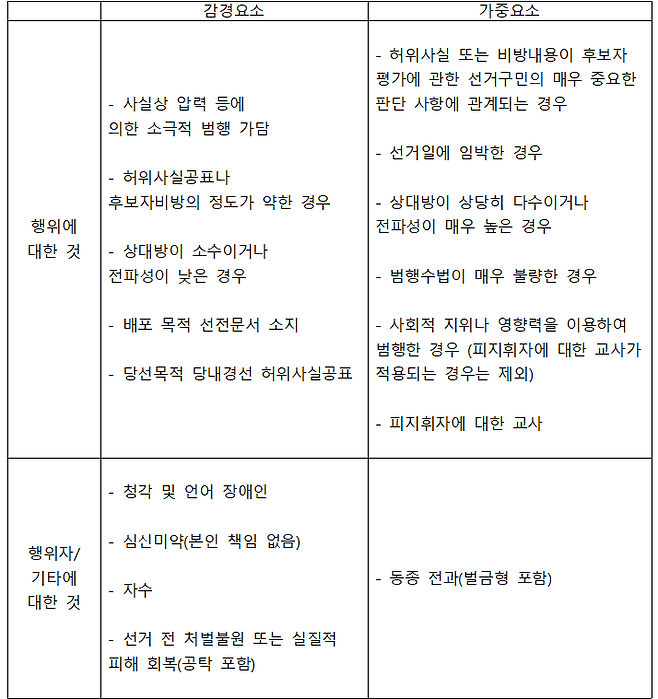 [당선목적 허위사실공표 특별양형인자] (출처: 양형기준)