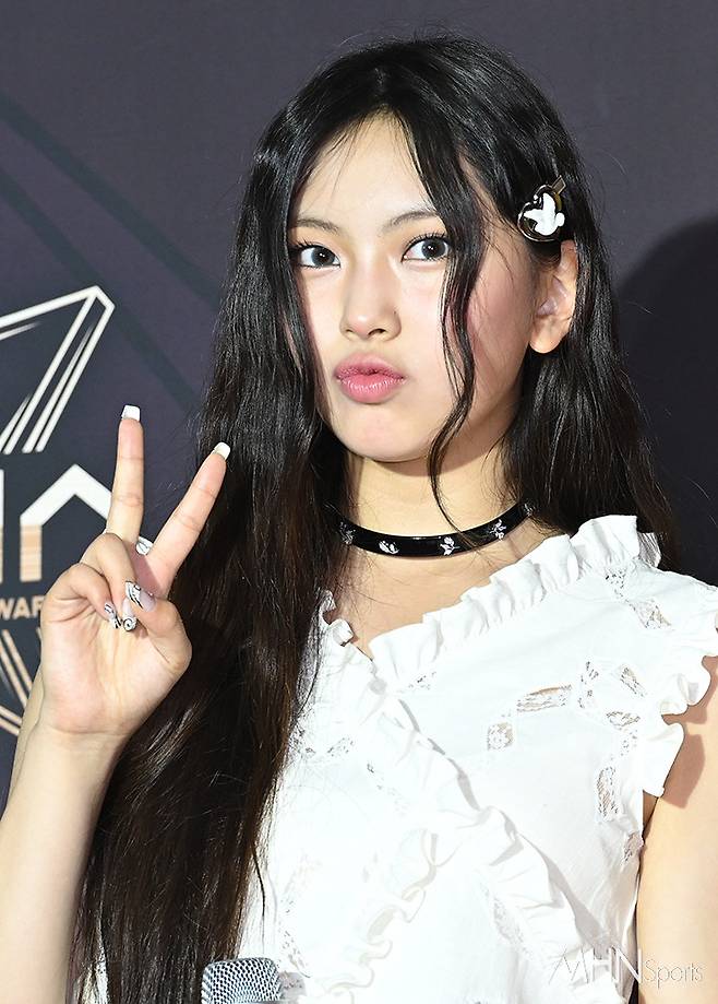 (MHN스포츠 인천, 이현지 기자) 그룹 뉴진스 혜인이 16일 오후 인천 중구 한 공연장에서 진행된 '코리아 그랜드 뮤직 어워즈'(KGMA)에서 포토타임을 갖고 있다.