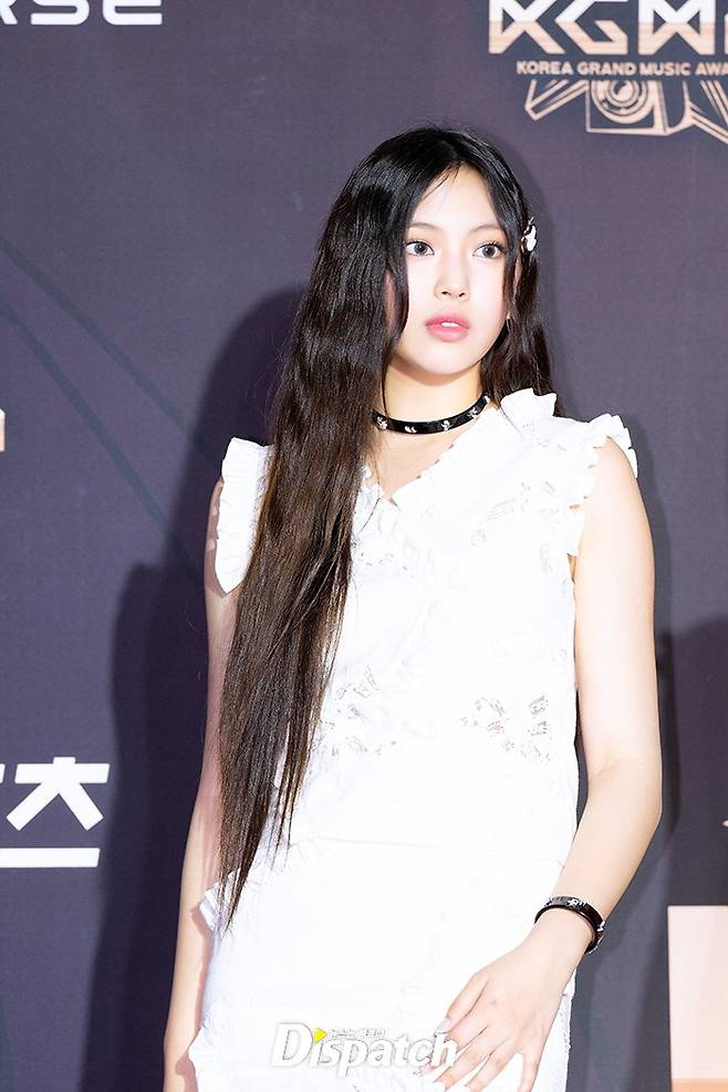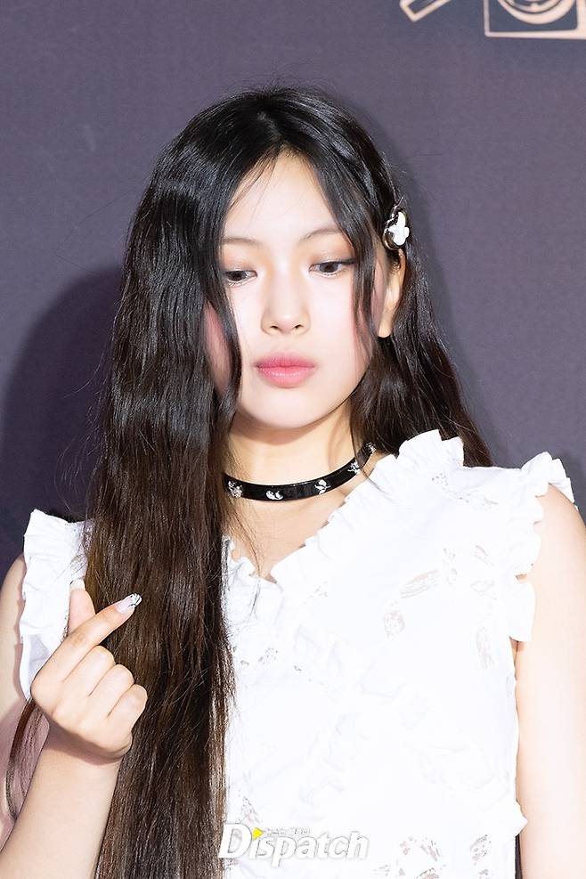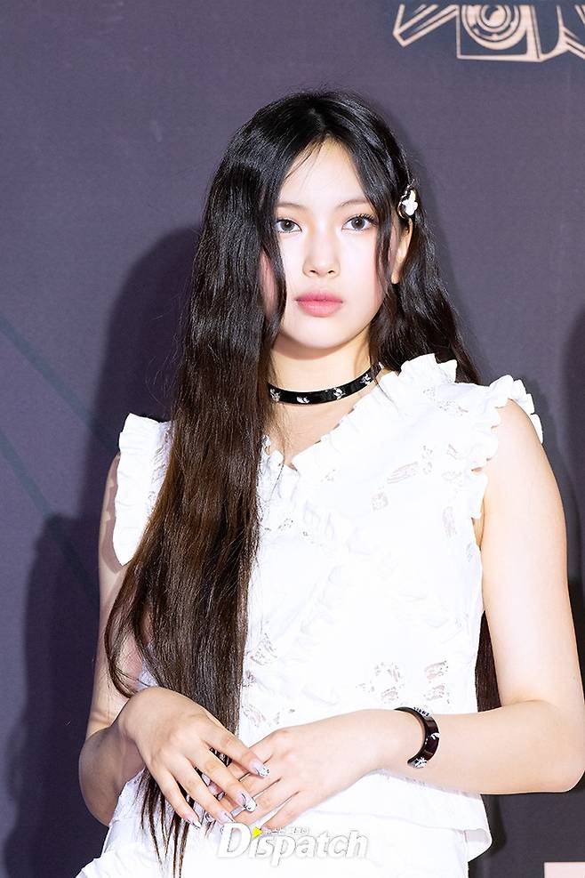 '뉴진스' 혜인은 화이트 드레스로 청순한 매력을 뽐냈다. 인형같은 미모가 돋보였다.